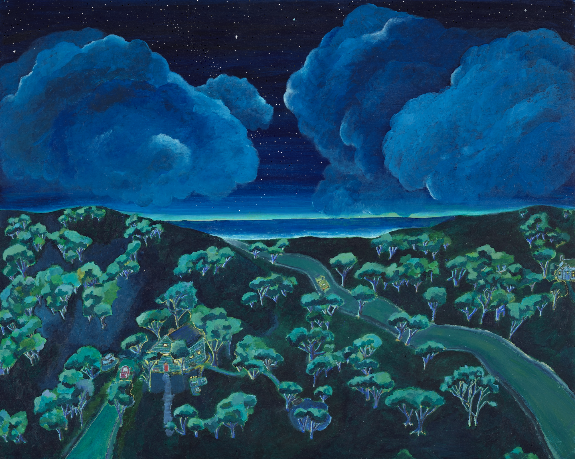 Acrylic, oil pastel, and pencil on wood